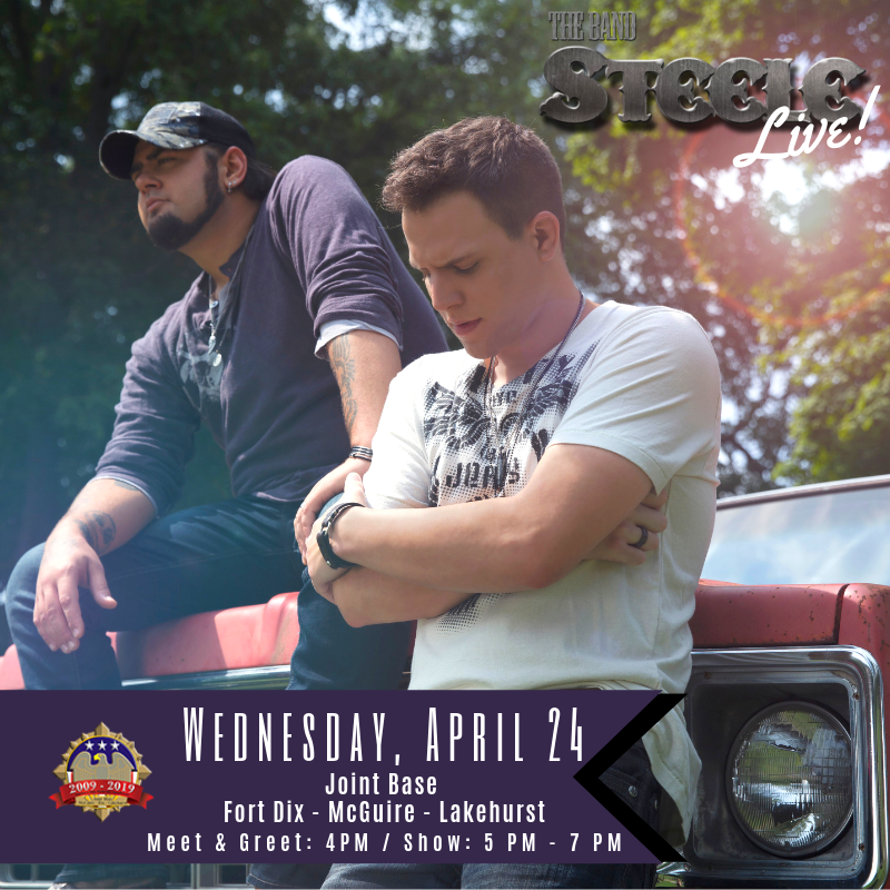 The Band Steele performs at Joint Base McGuire-Dix-Lakehurst Wednesday, April 24. Joint Base McGuire–Dix–Lakehurst (JB MDL) is the only tri-service base in the United States Department of Defense and includes units from all five armed forces branches. The Duo was invited to partake in a full base tour including participating in a flight simulation experience.