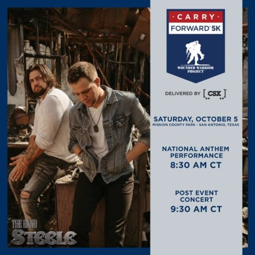 August 20, 2019 San Diego, CA • Nashville, TN • Jacksonville, FL NASHVILLE, Tenn. — Nashville-based country recording duo, The Band Steele (Bo Steele/ Ben Rubino), is slated to participate in the upcoming Wounded Warrior Project (WWP) Carry Forward® 5K, delivered by CSX®. Lending their time and talents, The Band Steele will appear at three WWP Carry Forward 5K…