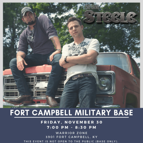 Join us in Kentucky! Friday, Nov. 30th at 7pm for a FREE concert at FORT CAMPBELL!! Anyone who has an ID card and is age 18+ is welcome to attend! Guests are also welcome – age 18+ and need to present valid drivers license, car insurance and car registration at Gate 4 (TC Freeman main gate) and pass…
